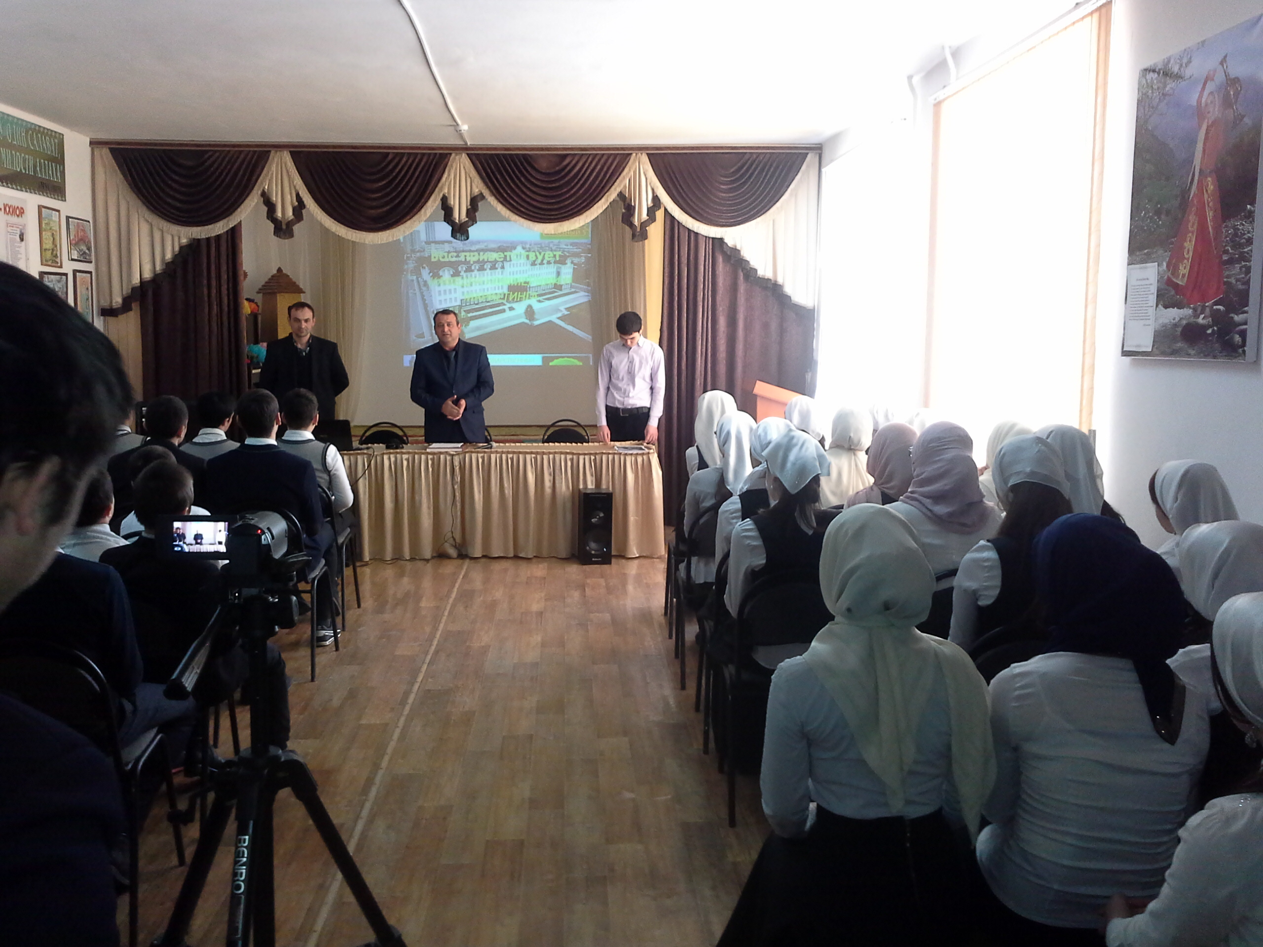 28.01.2016Сегодня прошла встреча учащихся 9-11 классов с представителями Чеченского Государственного Университета. На встрече были подняты вопросы по выбору профессии, куда пойдут учиться и многое другое. Также учащимся представили презентации, которые в дальнейшем помогут им определиться, куда поступят учится после школы.