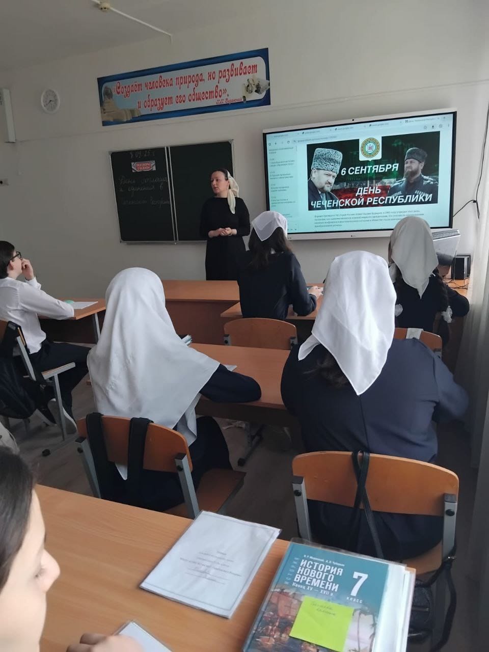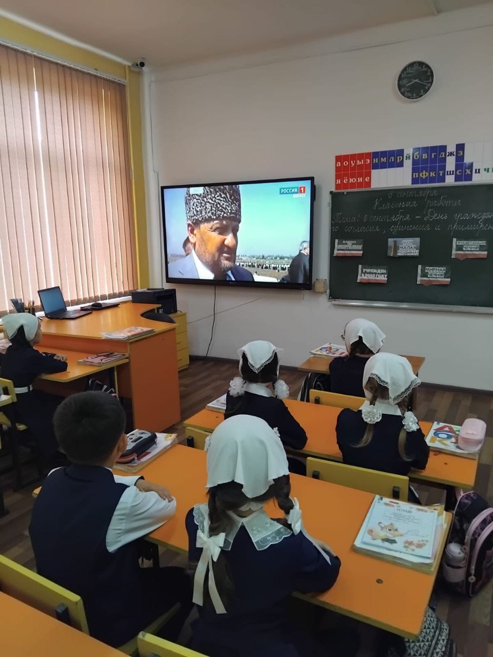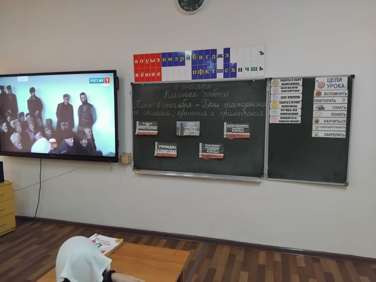 06.09.20256 сентября - День Чеченской республики важный для каждого из нас день. Сегодняшние граждане республики обязаны передать память о подвиге героя нации Ахмата-Хаджи Кадырова.В МБОУ"СОШ 2 им.М.Г.Гайрбекова с.Валерик" 08.09.25 г классные руководители 1-7 классов провели разговоры о важном, посвященные «Дню Чеченской республики». Была проведена беседа о подвиге первого президента Чеченской республики, героя России Ахмата-Хаджи Кадырова. Была ярко, красочно оформлена доска. Дети читали стихотворения про свою Родину, столицу ЧР.