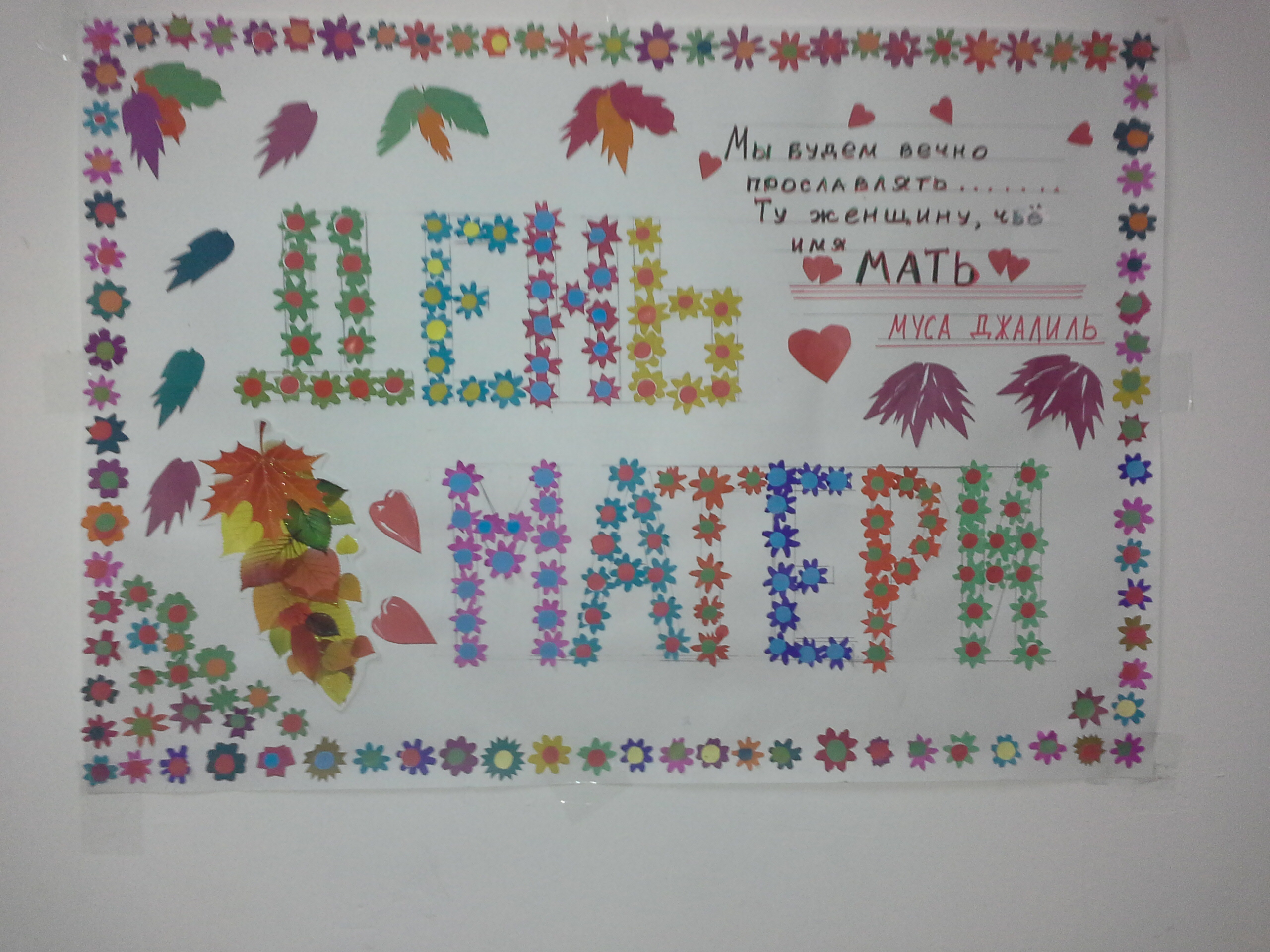 В рамках недели, посвященной "Дню матери" в школе были проведены торжественные линейки, конкурсы, классные часы. Учащиеся подготовили мероприятие с красочным оформлением.